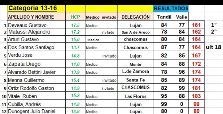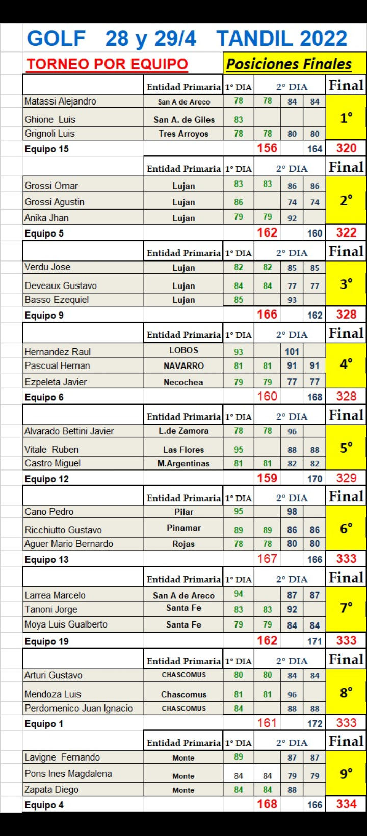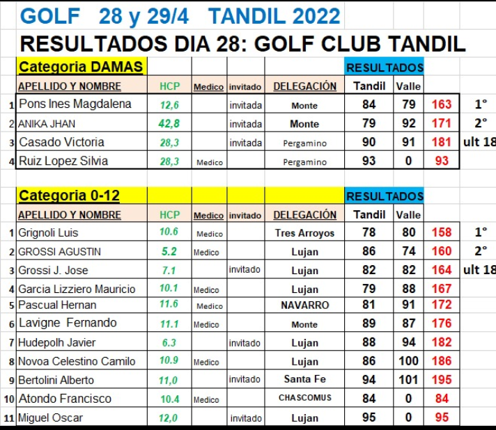 RESULTADOS FINALES -IX Torneo de Golf, realizado los días 28 y 29 de abril en la ciudad de Tandil
